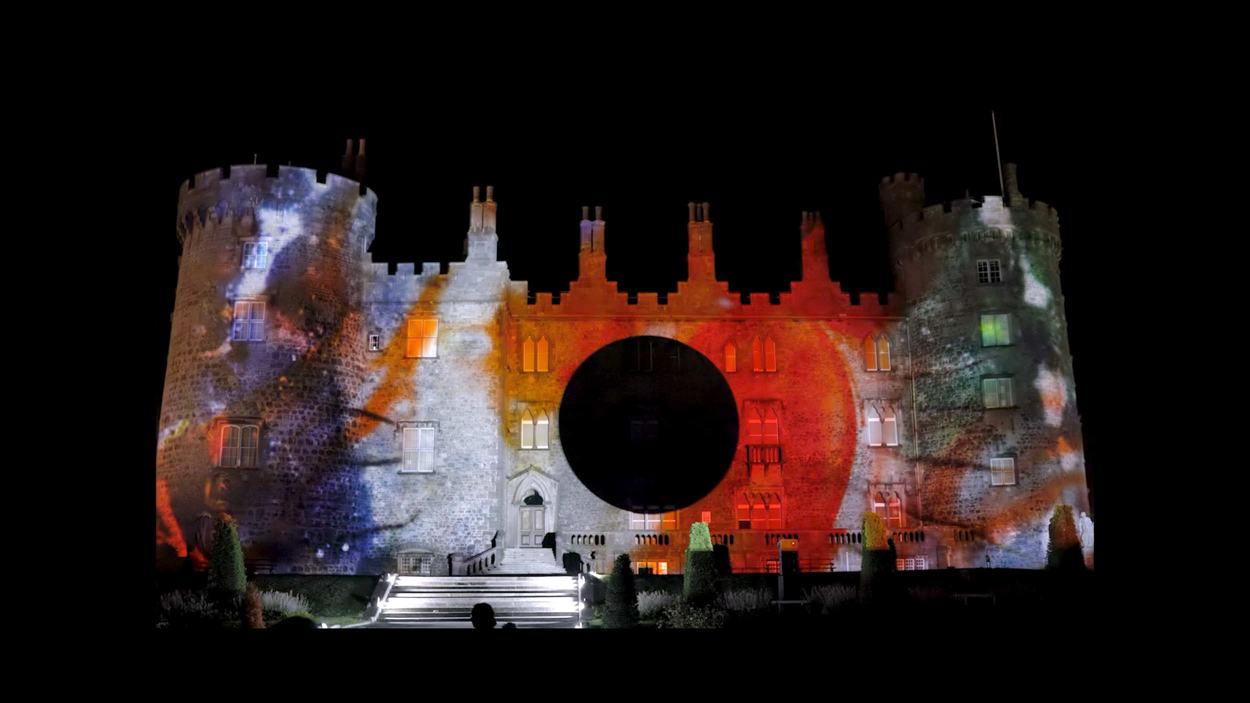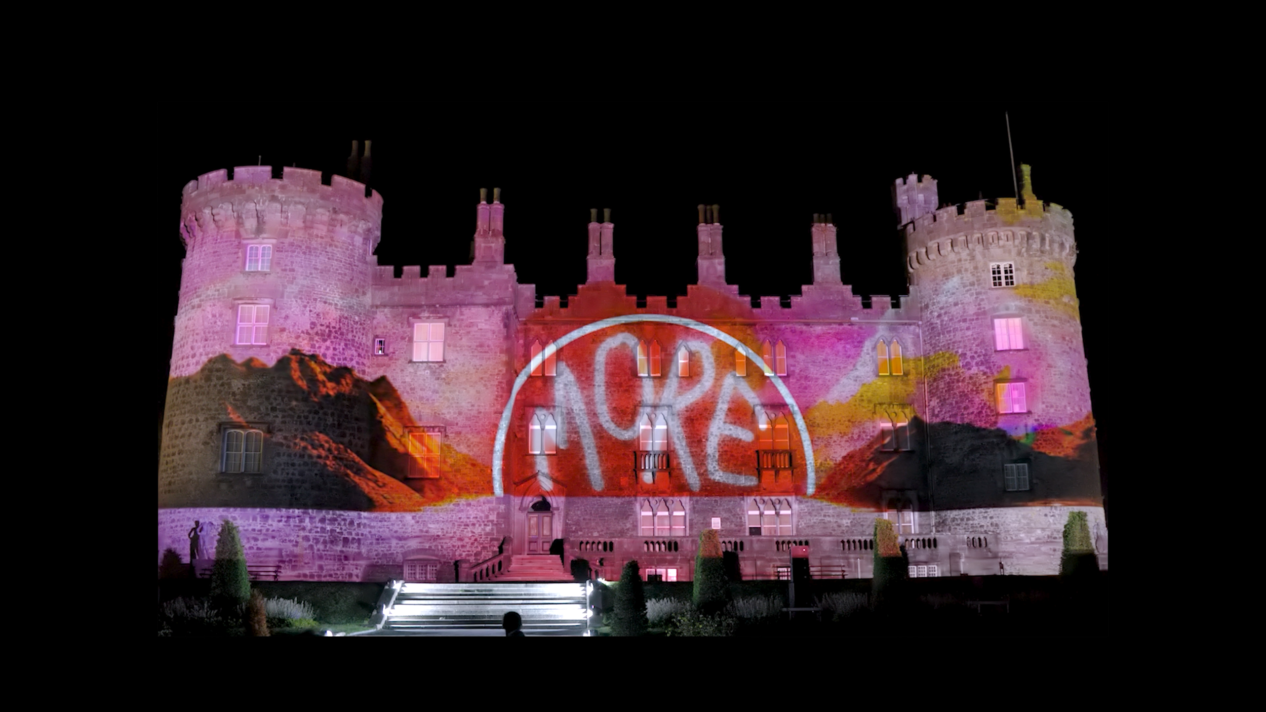 When I received the commission for Light Up The Castle, I embraced the opportunity fully. It is rare to be given the space to create original work that balances both music and film in its realisation — rarer still at this scale. The resulting piece was conceived specifically for the architecture, atmosphere and symbolic weight of Kilkenny Castle, engaging with the site as both historical monument and living public space, while reflecting back the urgency of the current moment on the continued journey of humanity.